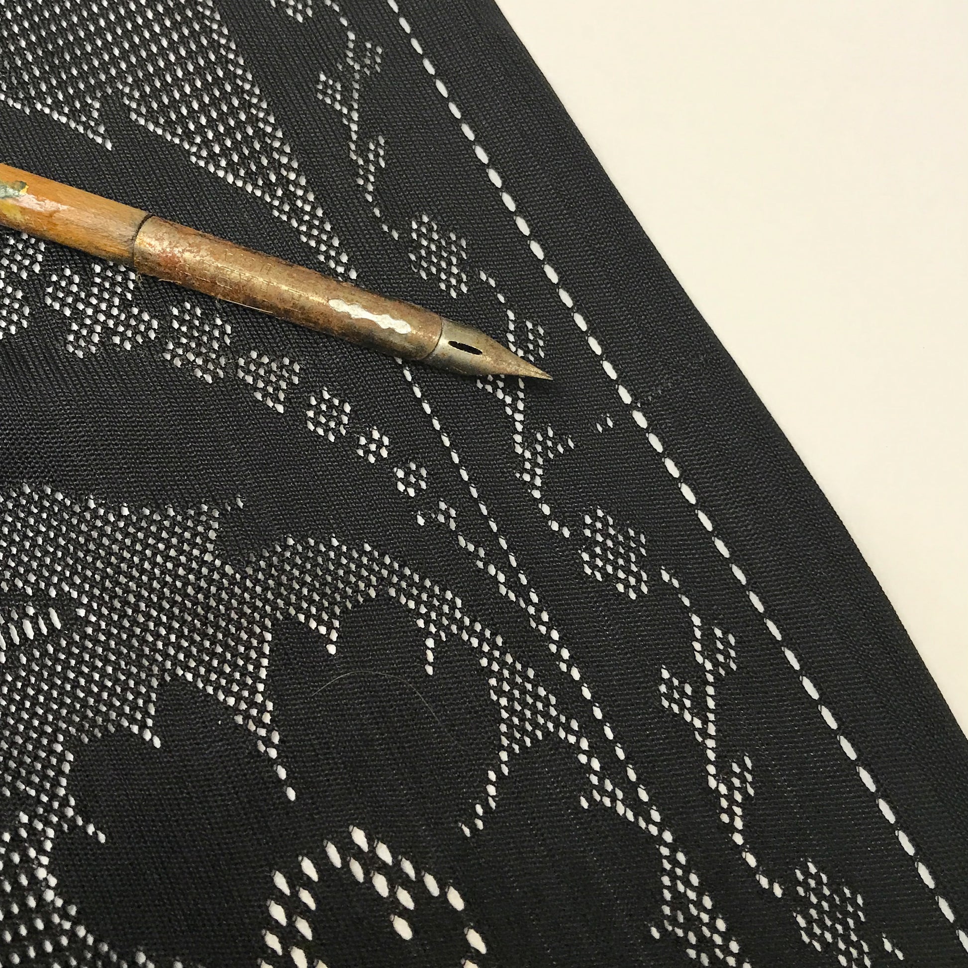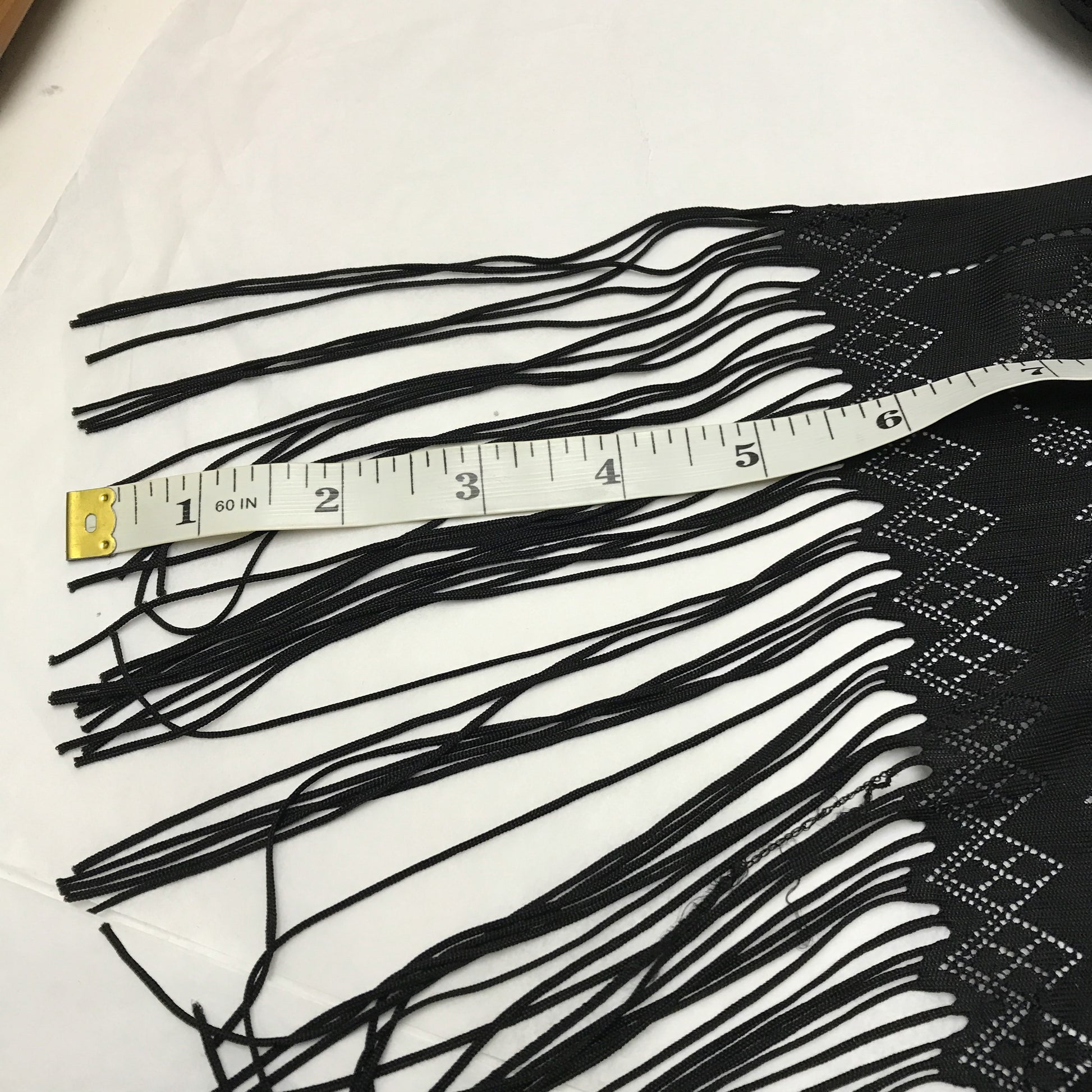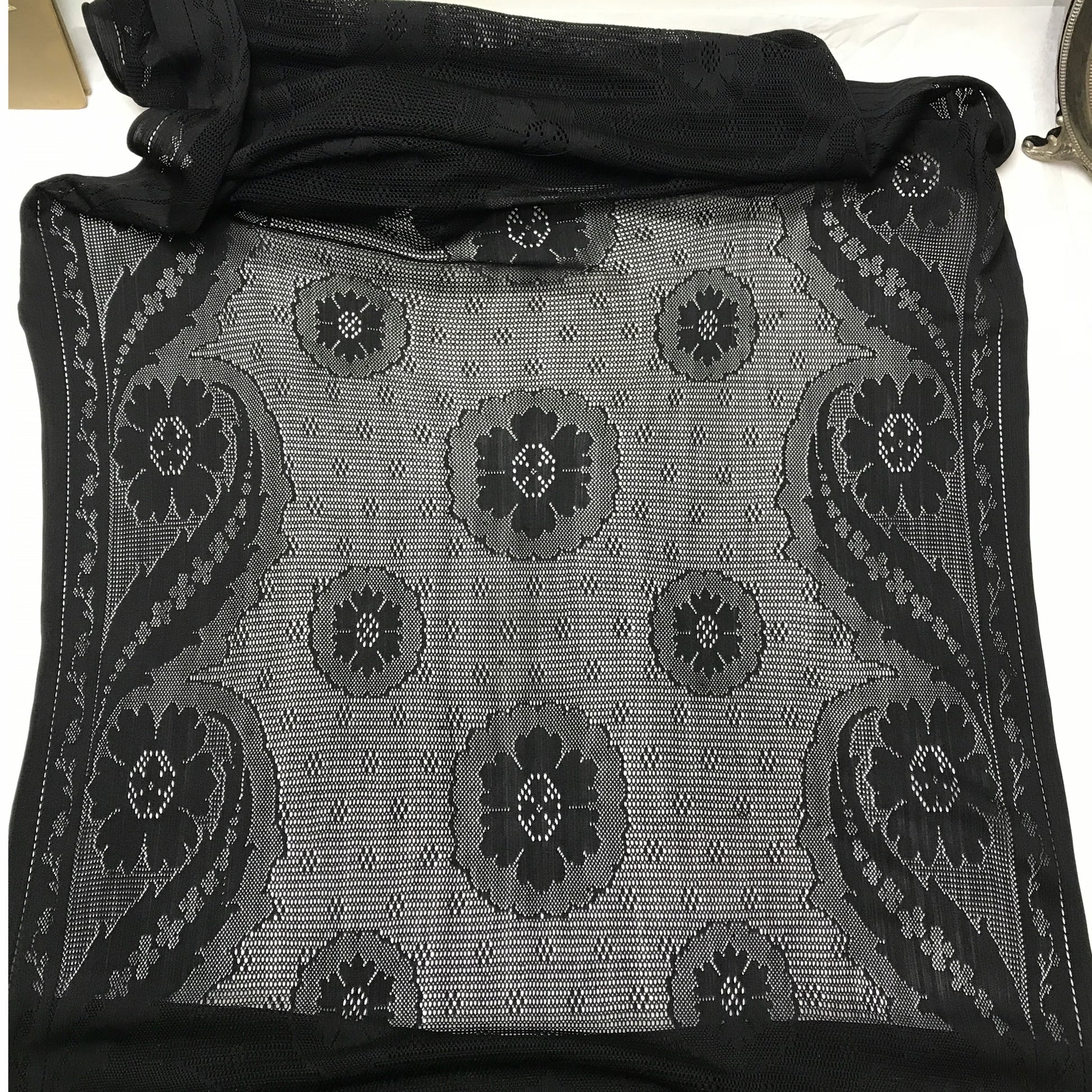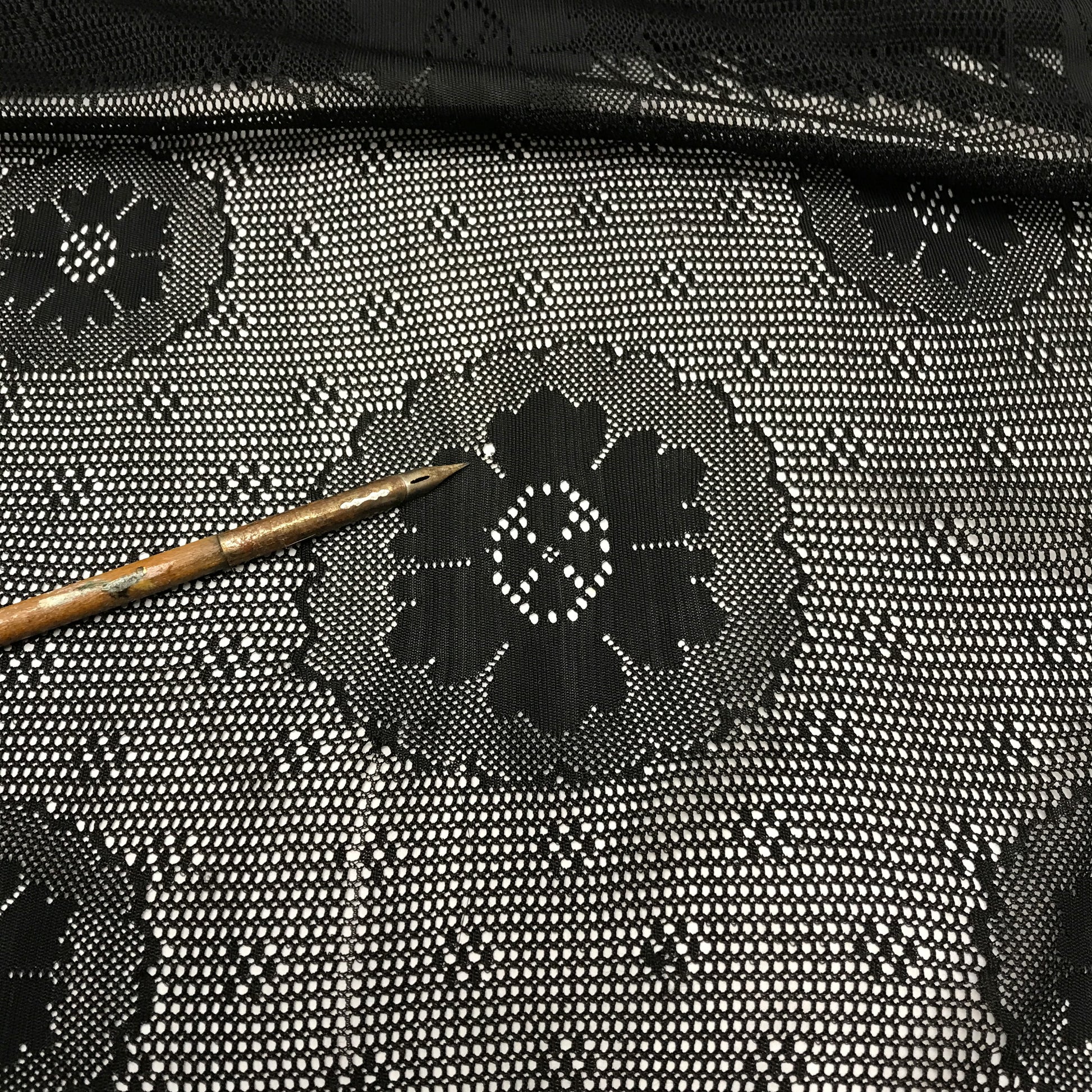 This exquisite black lace shawl features a floral design with a long 5.5 inch fringe at either end. It is a wonderful addition for any collector or student of antique fashion. The piece is in very good condition for its age with some very small faults highlighted below.