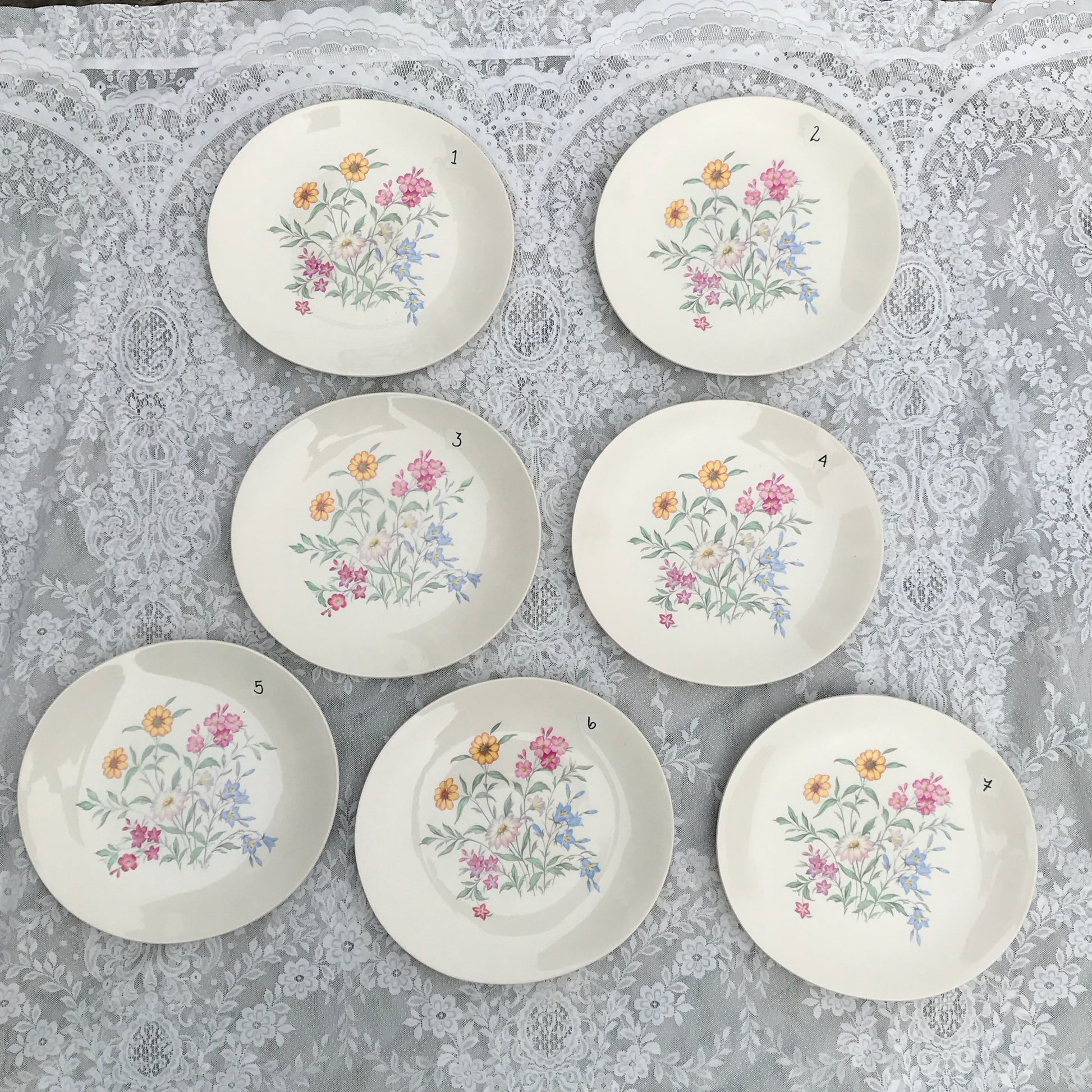 Clarice Cliff Dinner Plates Pink Susan Design for Royal Staffordshire, Set of 7, Pastel Country Wild Flowers
