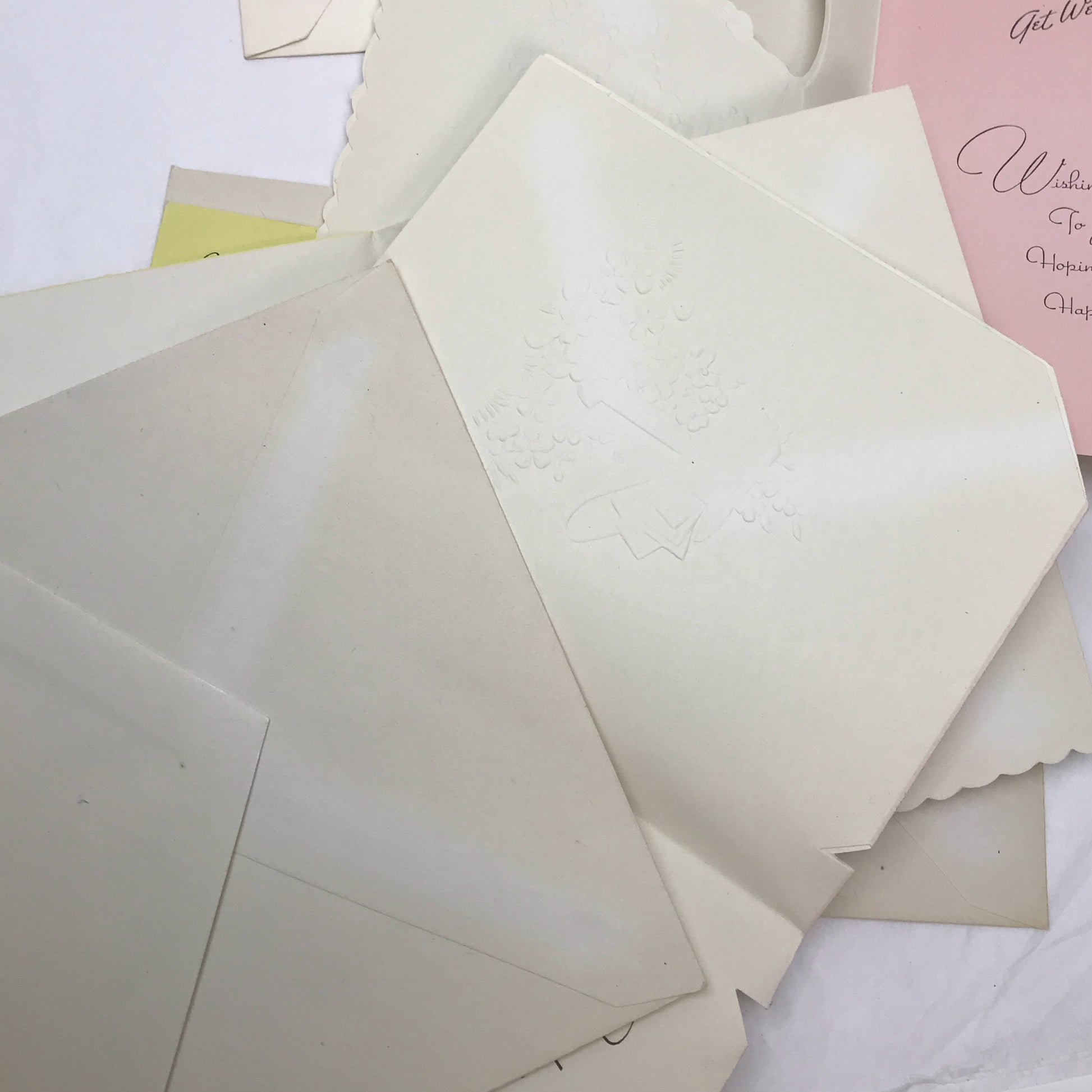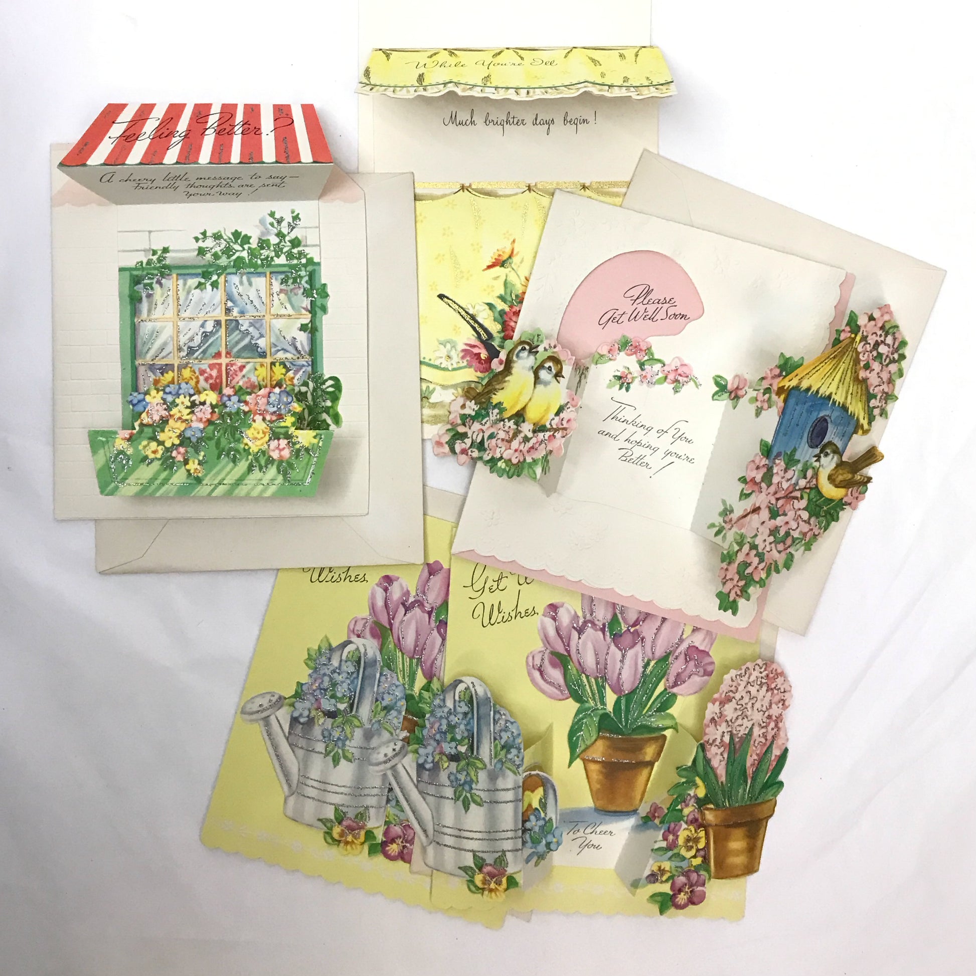 Lot of 12 Vintage Die Cut Greeting Cards, 6 Birthday, 5 Get Well, 1 Congratulations, Minor Signs of Age From Storage