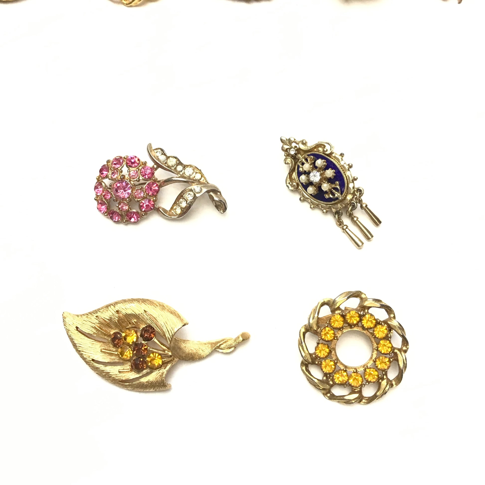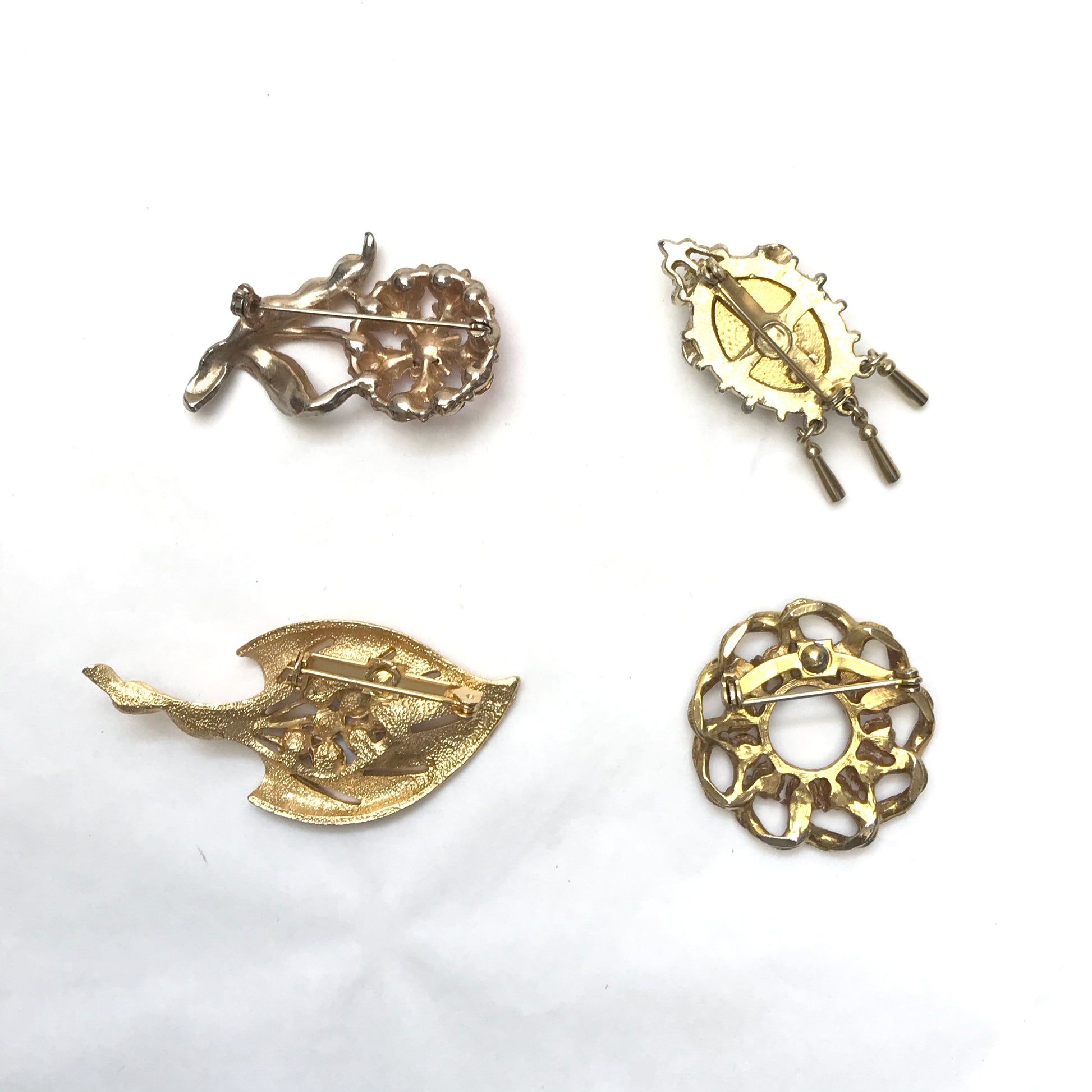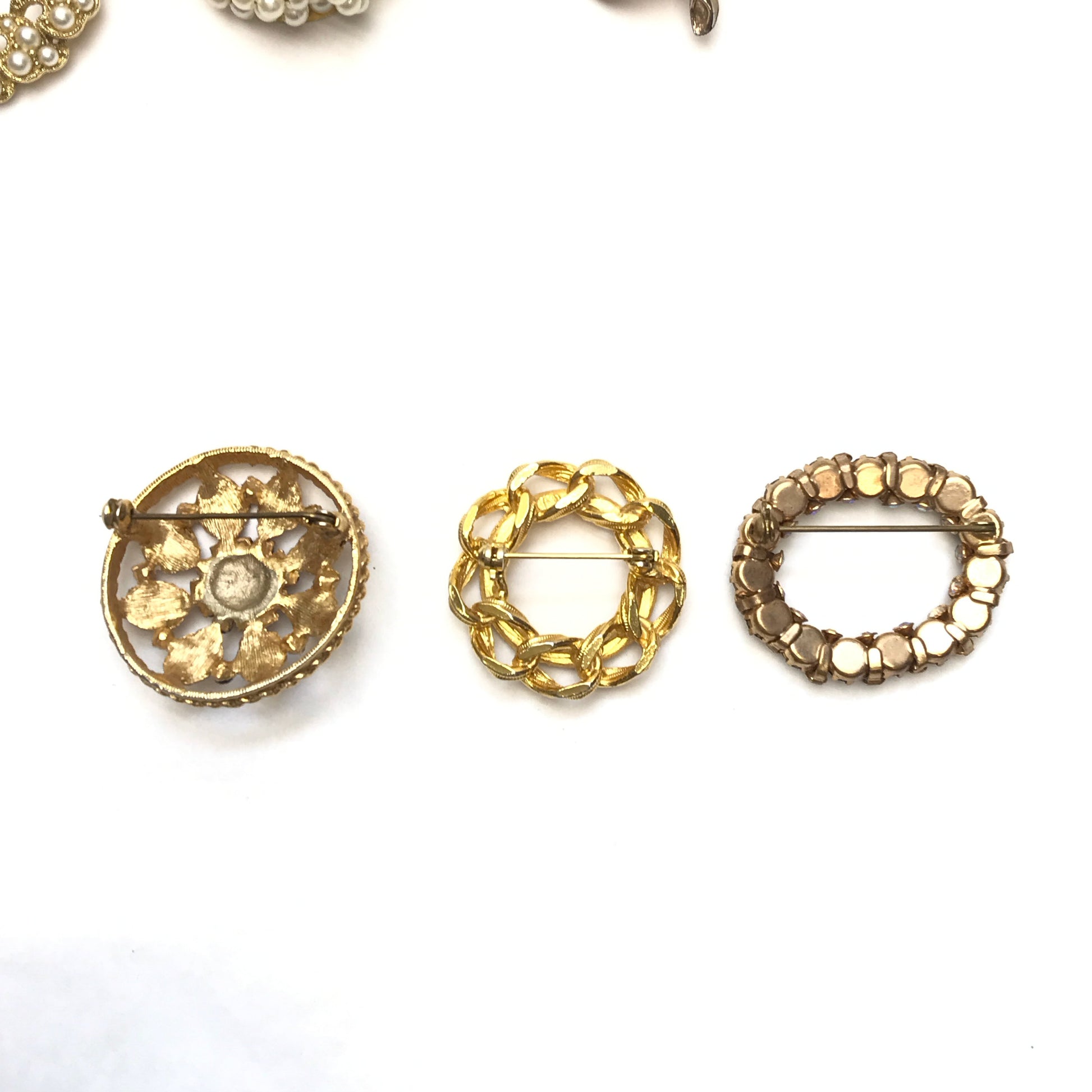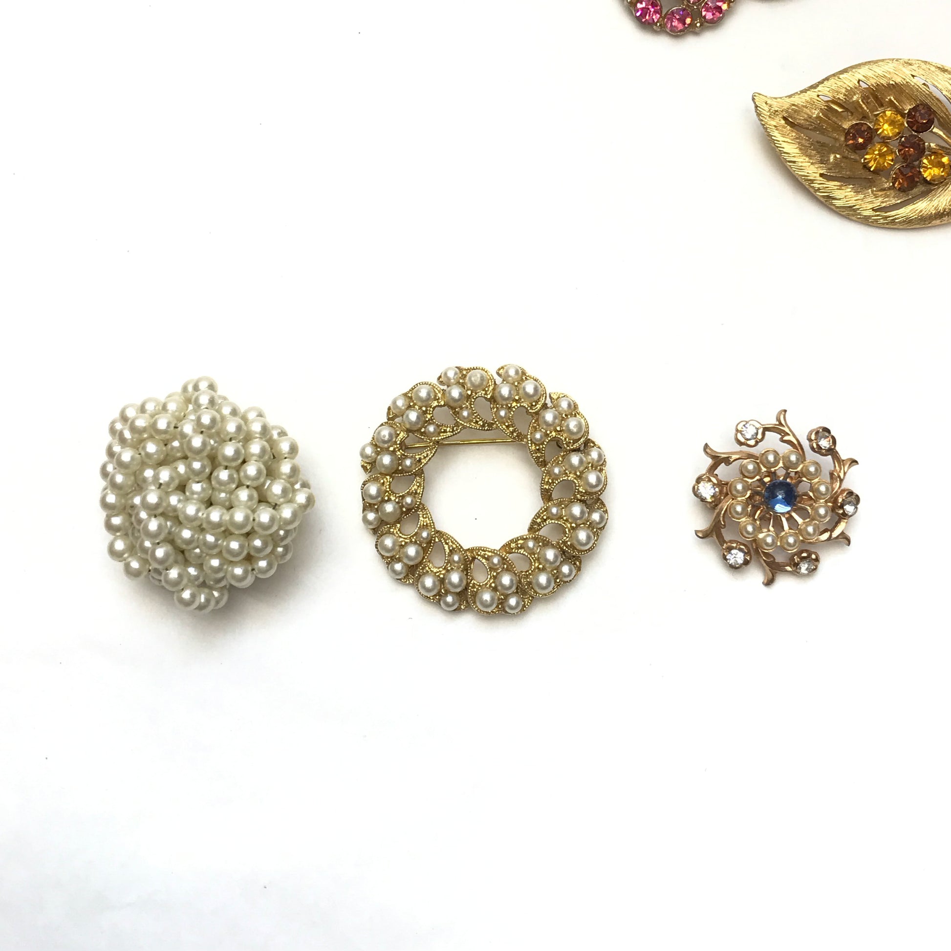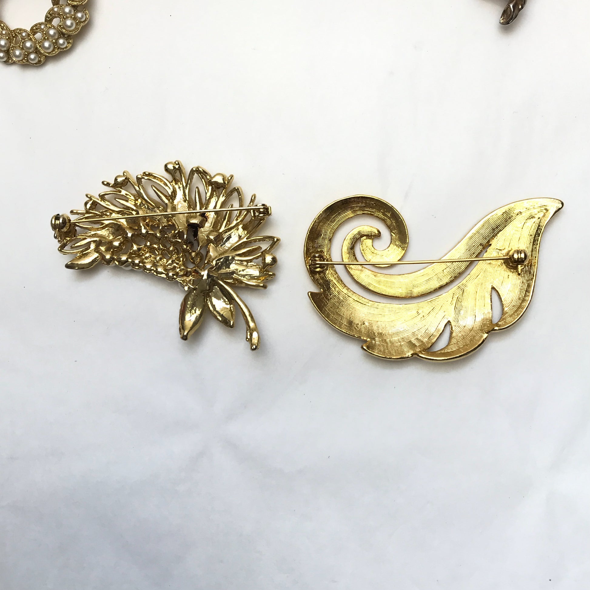 Lot Vintage Brooches, Various Sizes and Shapes, Textured Metal, Faux Pearls,Rhinestones