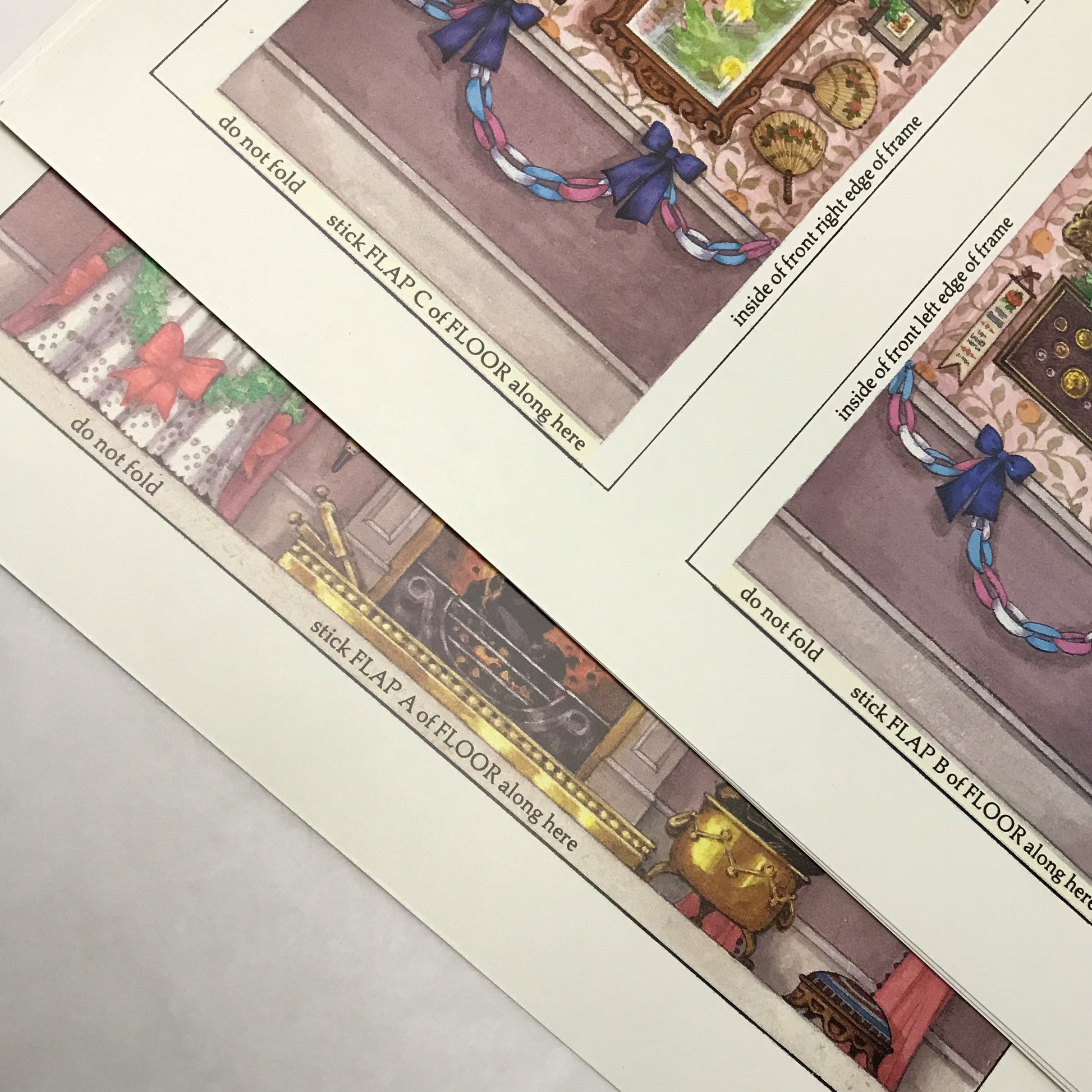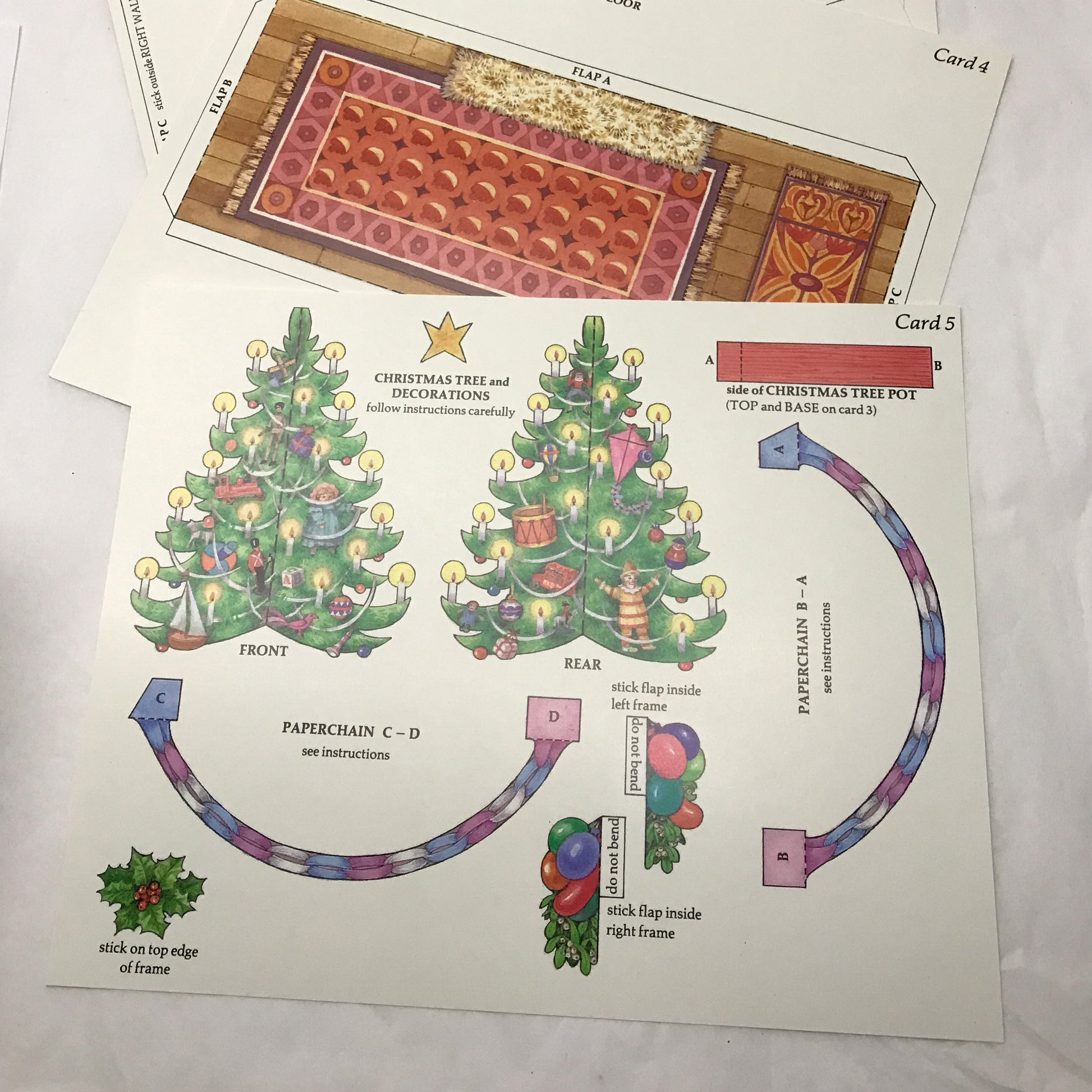There are 4 loose cards of cut outs that will take the shape of the walls and base of the stage, and 2 cards that include the characters and the decor and Christmas tree. Included in the package is a lengthy 4-page instruction pamphlet to help guide you through assembling the model.