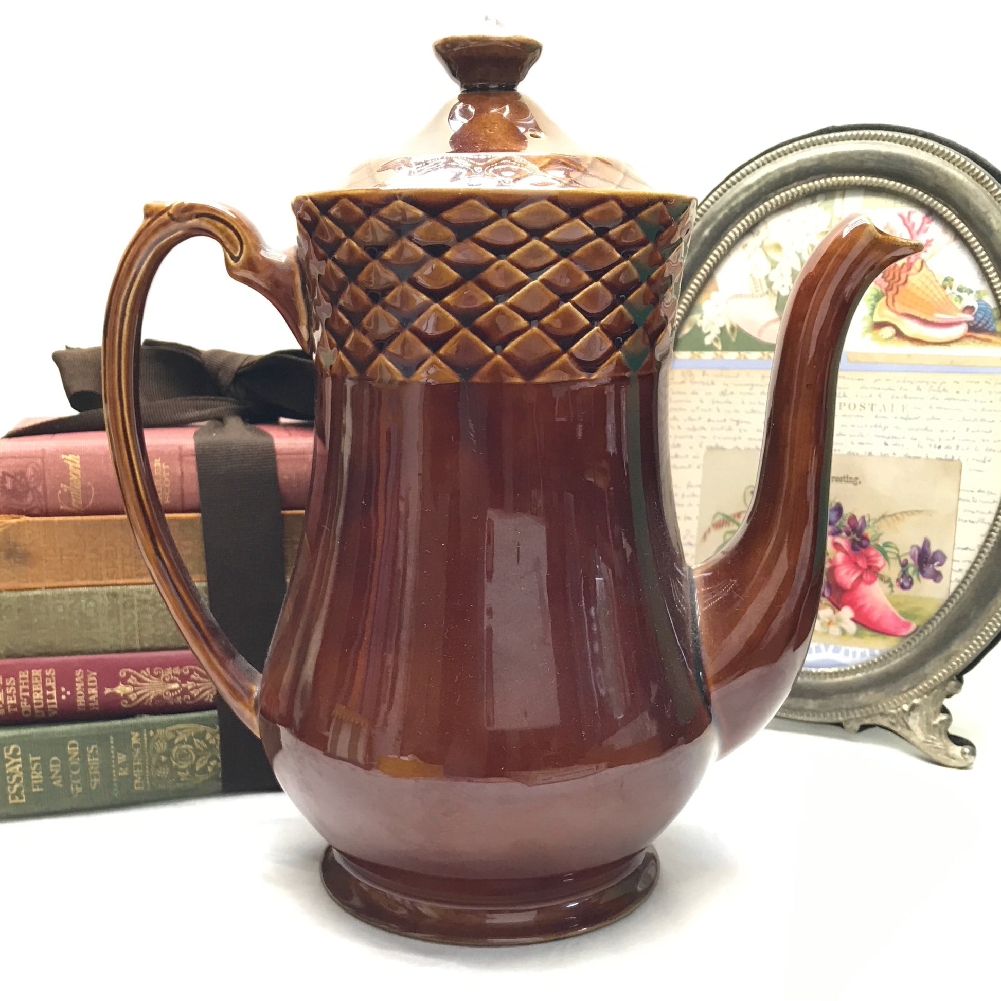 Crafted in Staffordshire, England, this vintage coffee pot is a must-have for keeping your beverages perfectly warm for serving. Its high-quality porcelain material and innovative double locking system make it a durable and functional choice for any tea or coffee lover.
